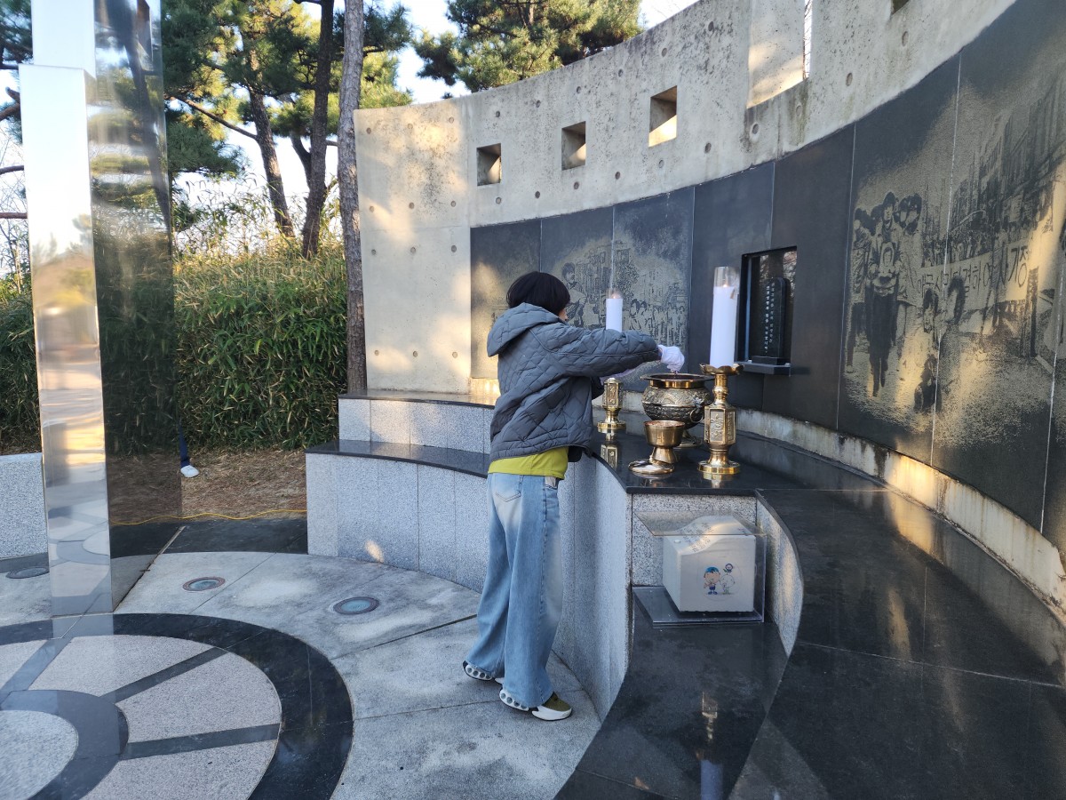 참배 후 "역사의 주역이었던 열사님을 추모하며 부산의 민주공원이 계속 발전하기를 소망합니다"라는 글을 남겼습니다.