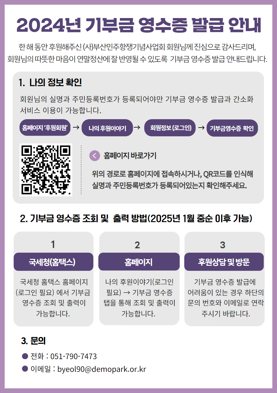 2024년 기부금 영수증 발급 안내