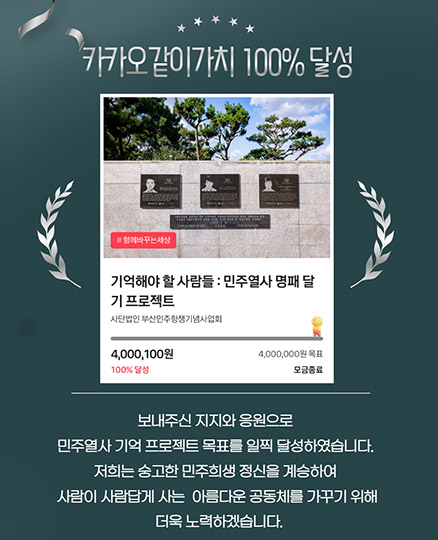[카카오같이가치 모금 목표 달성] 기억해야 할 사람들 : 민주열사 명패달기 프로젝트