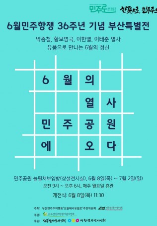 일정 전체 67건 (6페이지) 전체보기 예매준비중 예매중 예매마감 진행중 종료 전체 공연 전시 행사 축제 체험 기타 검색 행사종료 우리 모두는 서로의 운명이다 멸종위기동물 예술로 HUG 장소 잡은펼쳐보임방(기획전시실) 기간 2023-09-15(금) ~ 2023-12-03(일) 시간 09:00~18:00 상세보기 행사종료 <청소년 민주주의 상상한마당> 장소 민주공원 전역 기간 2023-08-26(토) ~ 2023-08-26(토) 시간 오후 1시 ~ 5시 상세보기 행사종료 <춤, 관객과 함께하다 - 2023 민주공원 기획공연> 장소 큰방(중극장) 기간 2023-09-02(토) ~ 2023-09-02(토) 시간 오후 2시 상세보기 행사종료 4·3창작오페라 <순이삼촌> 제작발표회 장소 민주공원 전역 기간 2023-07-28(금) ~ 2023-07-28(금) 시간 오전 10시 30분~ 상세보기 행사종료 2023 민주공원 예술놀이터 ‘샌드아트&체험’ 장소 작은방(소극장) 기간 2023-06-24(토) ~ 2023-06-24(토) 시간 오후 2시 상세보기 행사종료 6월민주항쟁 36주년 기념 전시 민중미술 2023 - 입 속의 검은 입 장소 잡은펼쳐보임방(기획전시실) 기간 2023-06-10(토) ~ 2023-08-27(일) 시간 오전 10시 ~ 오후 5시, 월요일 휴관 상세보기 행사종료 6월민주항쟁 36주년 기념 부산특별전 장소 늘펼쳐보임방(상설전시실) 기간 2023-06-08(목) ~ 2023-07-02(일) 시간 오전 9시 ~ 오후 6시, 월요일 휴관 상세보기 행사종료 6월민주항쟁 제36주년 부산기념식 장소 기타 행사 및 프로그램 기간 2023-06-10(토) ~ 2023-06-10(토) 시간 오후 4시 상세보기 행사종료 민주공원 기획공연 <발이되기> 장소 작은방(소극장) 기간 2023-06-03(토) ~ 2023-06-03(토) 시간 오후 2시 상세보기 행사종료 5·18민중항쟁 43주년 부산 기념식 장소 큰방(중극장) 기간 2023-05-18(목) ~ 2023-05-18(목) 시간 오후 7시 30분 상세보기 처음 1페이지 2페이지 3페이지 4페이지 5페이지 열린6페이지 7페이지 맨끝