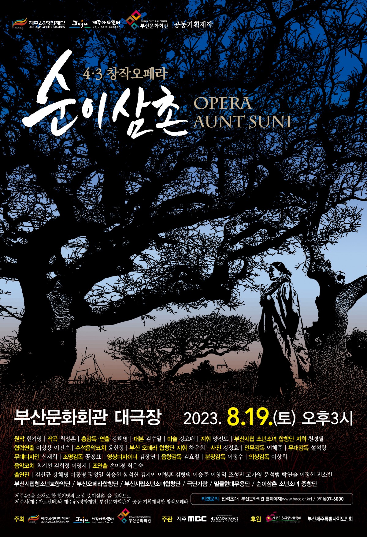 4·3창작오페라 <순이삼촌> 부산 공연은 8월 19일(토) 오후 3시 부산문화회관 중극장에서 열리며 8월 19일(토) 공연은 전석 무료로 티켓은 부산문화회관 홈페이지(www.bscc.or.kr) <공연·전시안내>를 통해 1인당 4매까지 예약 가능하며, 현장에서 수령해 선착순 입장할 수 있습니다.