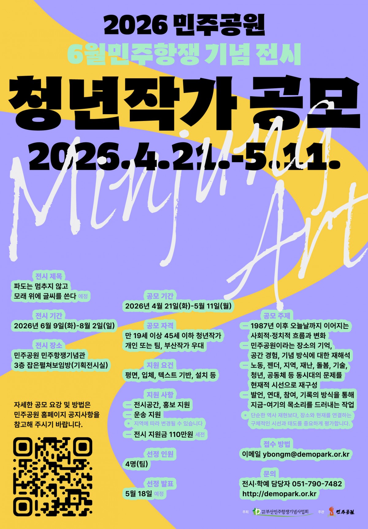○ 공 모 명 : 2026 민주공원 6월민주항쟁 기념 전시 청년작가 공모