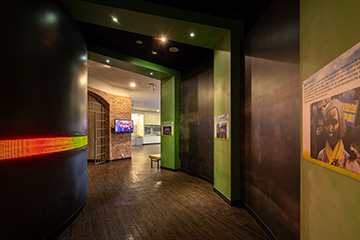 먼저 항쟁의 거리에서 늘 메아리치던 구호들이 우리를 맞이한다. 굴의 한 쪽 벽에는 갖가지 숫자와 문자들이 빛을 내며 흘러간다. 다른 쪽 벽에는 항쟁의 거리에서 싸우던 민주 시민들의 영상이 미끄러진다. 우리 근현대사를 살아왔던 민중들의 만다라가 저 너머 ‘검은 산 붉은 강’에 오롯이 살아있다.