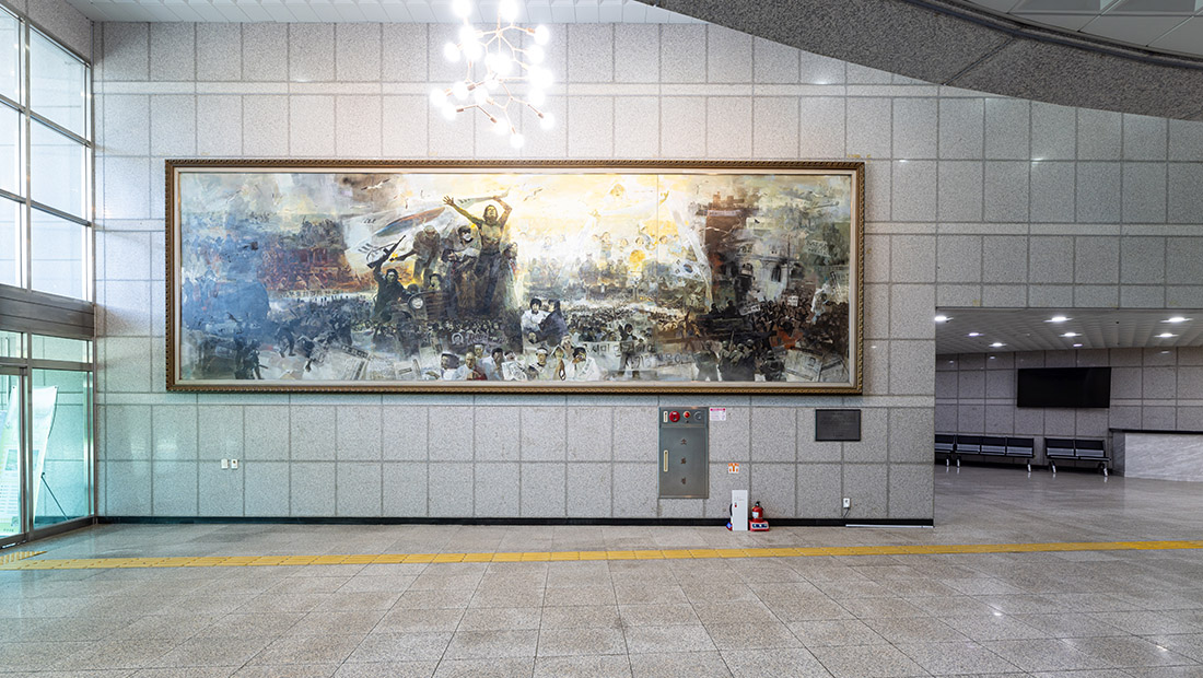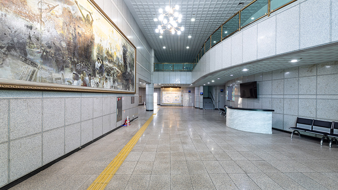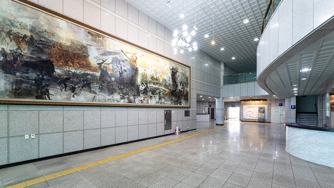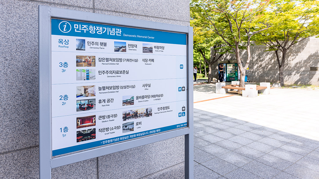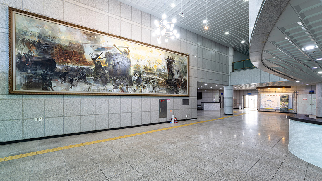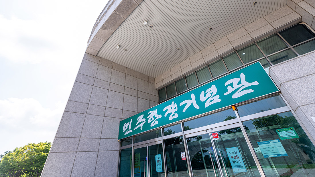 민주공원 두루보기 민주공원(바깥) 민주항쟁기념관 민주주의기록관 가상체험 VR 찾아오시는길 blank blank 민주항쟁기념관 늘펼쳐보임방(상설전시실) 잡은펼쳐보임방(기획전시실) 큰방(중극장) 작은방(소극장) 1층 로비 달팽이길 옥상쉼터 blank blank 1층 로비 1층 로비 민주항쟁기념관 1층 로비 민주항쟁기념관 1층 로비