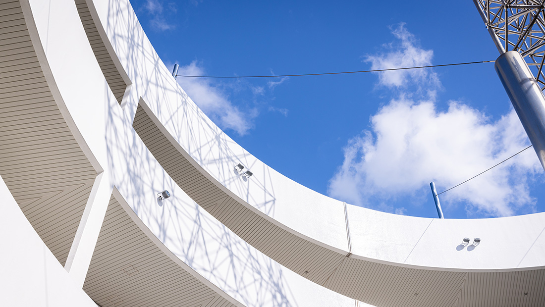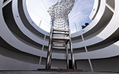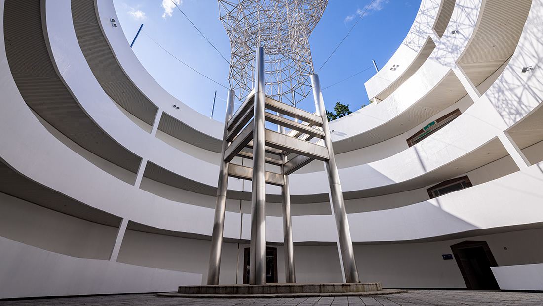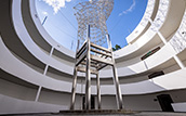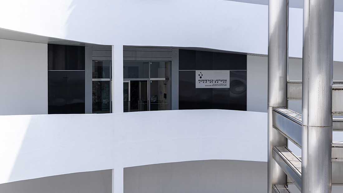 민주항쟁기념관 내부는 '원형 램프'(달팽이길)라는 독특한 구조를 가지고 있습니다. 민주항쟁기념관의 건물 외형은 둥근 성채 모양으로 설계하고 그 한가운데 상징조형물을 설치하였고, 지하 1층에서 옥상 전망대까지 연결하는 주통로를 달팽이 모양으로 만들어 어느 층에서도 들어오고 나갈 수 있습니다. 휠체어를 사용하는 등 교통약자의 보행권을 보장하고자 만들었습니다. 원형램프(달팽이길)의 특성을 활용하여 길을 따라 어린이들의 작품을 전시하기도 하고 행사에 따라 다양한 체험 프로그램 부스를 설치하여 운영하기도 합니다.