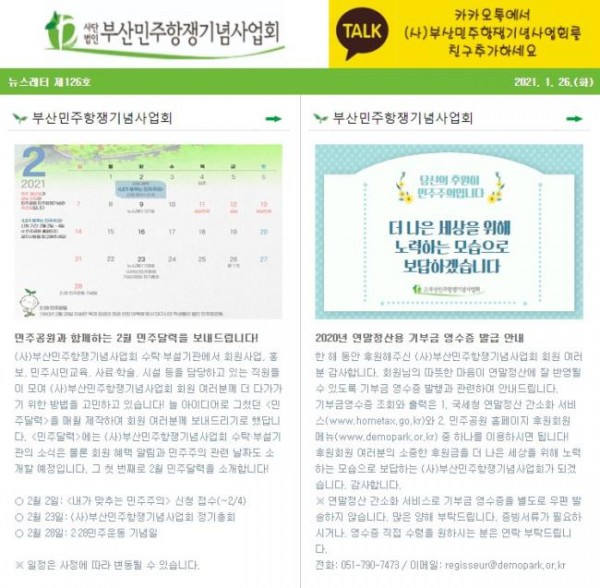 (2021,1,26)부산민주항쟁기념사업회 뉴스레터 제126호 - 기부금 영수증 조회..