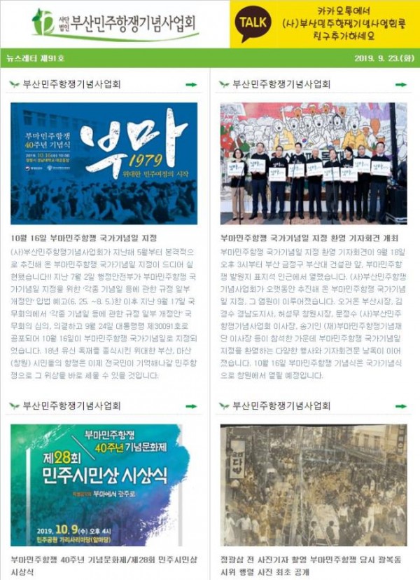 (2019.09.24)부산민주항쟁기념사업회 뉴스레터 제91호- 10월 16일 부마민주항쟁 국가기념일 지정