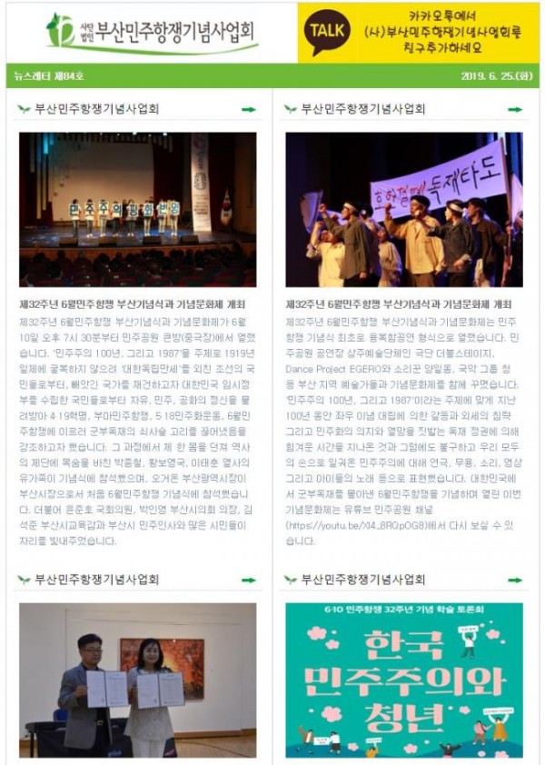 (2019.6.18)부산민주항쟁기념사업회 뉴스레터 제84호 - 6·10민주항쟁 32..