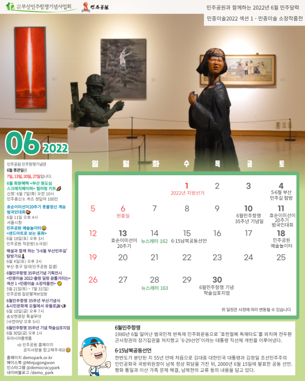 민주공원과 함께하는 2022년 6월 민주달력