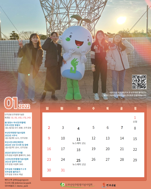 민주공원과 함께하는 2022년 1월 민주달력