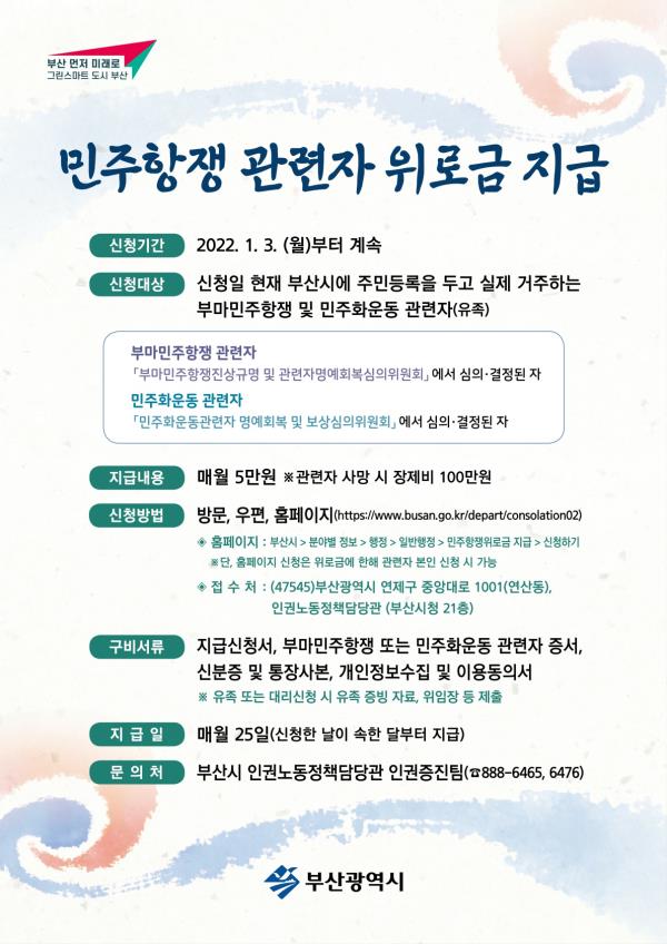 부산광역시 민주항쟁 관련자 위로금 지급 계획 수정공고