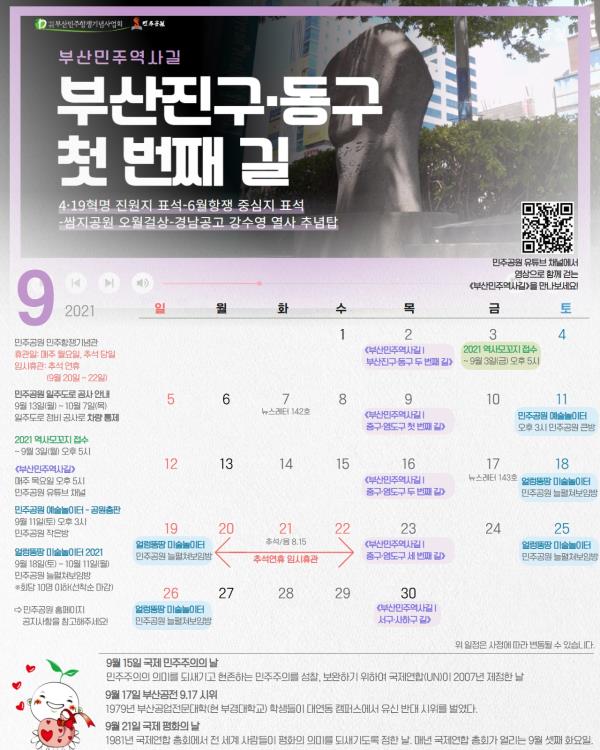<민주달력>은 (사)부산민주항쟁기념사업회 수탁·부설기관의 소식과 회원 혜택 알림, 민주주의 관련 날짜를 안내합니다.