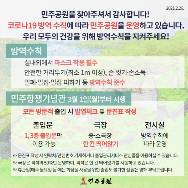 (2021.2.26. 공지)민주공원 운영 안내