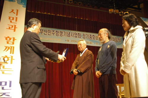 2006년 정기총회 감사패 전달 작성자 민주공원 작성일 2006-01-23 조회수 152 - 첨부파일 : 18.JPG (106.7K) - 다운로드 2 2023-12-19 15:23:06 목록 본문 2006년 1월 20일 민주공원 큰방퇴임 직원 감사패 전달-하동삼 전 시설관리팀장, 최정완 전 교육기획팀장, 이미미 전 상설전시실 안내 목록 목록으로