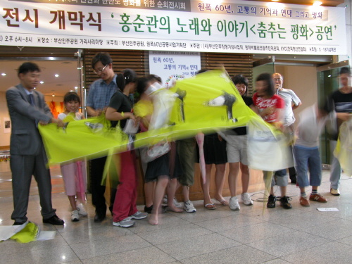 평화전시회 개막식 퍼포먼스 작성자 민주공원 작성일 2005-07-26 조회수 180 - 첨부파일 : 16.JPG (97.1K) - 다운로드 2 2023-12-19 12:05:53 목록 본문 2005년 7월 9일 민주항쟁기념관 잡은펼쳐보임방 목록 목록으로