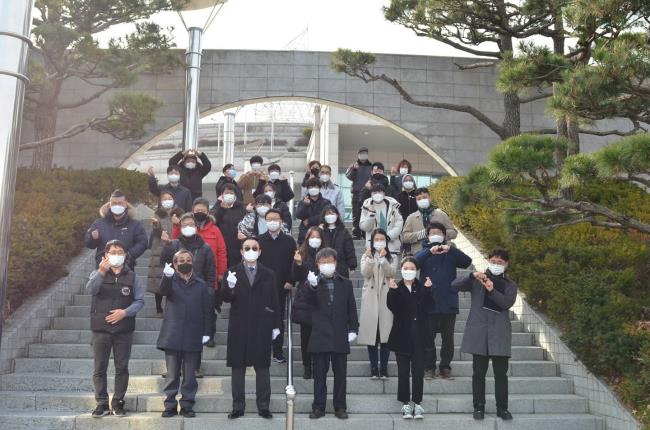 (사)부산민주항쟁기념사업회 수탁, 부설 기관의 임·직원과 겨울 동안 함께하는 근로장학생은 민주공원 넋기림마당에서 참배하며 2021년 업무를 시작했습니다. '시민 속으로, 시민과 함께'라는 기치 아래 한국 민주주의 발전에 기여하는 한 해가 되도록 노력할 것을 다짐했습니다.