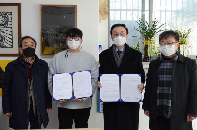 시무식 이후 문정수 이사장과 김영웅 민주공원노동조합 위원장은 2021년 (사)부산민주항쟁기념사업회 임금·단체 협약서를 체결했습니다.