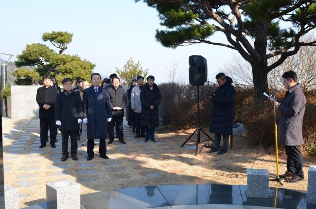 (사)부산민주항쟁기념사업회 임직원은 2020년 경자년을 시작하며 1월 2일 민주공원 넋기림마당(추념의 장)에서 참배를 하고 시무식을 가졌습니다. 문정수 (사)부산민주항쟁기념사업회 이사장, 김종기 (사)부산민주항쟁기념사업회 상임이사 겸 민주공원 관장 등 모든 임직원이 민주영령의 뜻을 기리며 헌화와 참배를 했습니다.
