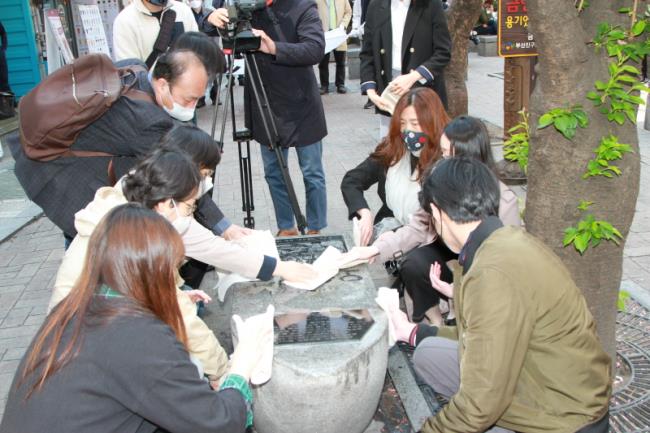 5·18부산추진위 청년기획단은 황보영국 열사의 뜻을 기리기 위해 <오월걸상 씻김 퍼포먼스>를 하고 기자회견을 진행했습니다.