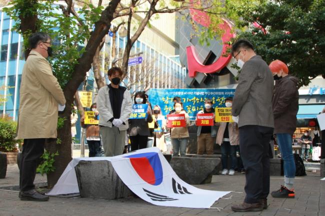 오늘 오전인 4월 9일 10시 30분부터 5·18민중항쟁의 진상 규명과 책임자 처벌을 외치며 분신한 황보영국 열사를 기리는 오월걸상(서면 롯데백화점 후문 인근) 앞에서 기자회견을 열었습니다.