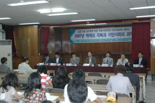 1987년 체제의 극복과 시민사회의 과제 작성자 민주공원 작성일 2007-06-05 조회수 151 - 첨부파일 : 02.JPG (139.5K) - 다운로드 0 2023-12-26 19:46:41 목록 본문 2007년 5월 31일 부산YWCA 2층 강당"1987년 체제의 극복과 시민사회의 과제" 심포지엄 목록 목록으로