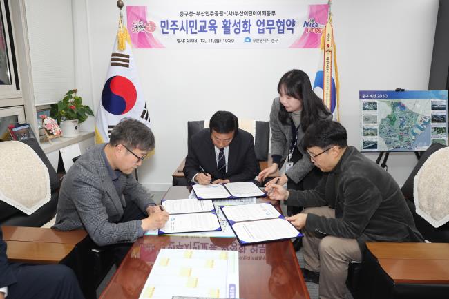 12월 11일(월) 부산 중구청과 민주공원, 사단법인 부산어린이어깨동무가 '민주시민교육 활성화 업무협약'을 체결하였습니다.