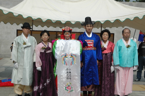 한국전통혼례 작성자 민주공원 작성일 2006-10-09 조회수 143 - 첨부파일 : 03.JPG (139.0K) - 다운로드 0 2023-12-26 17:30:07 목록 본문 아시아문화한마당2006년 10월 8일 민주공원 야외마당▶한국전통혼례 - 다문화가족 커플의 한국전통혼례 목록 목록으로