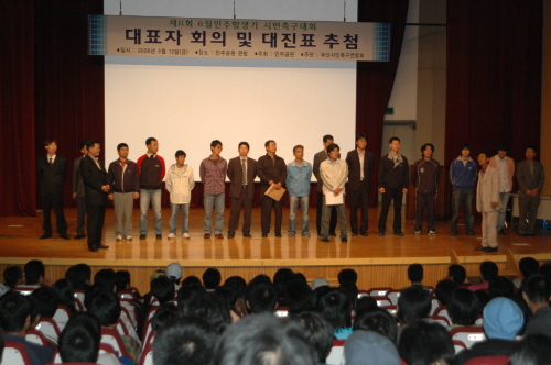 6월항쟁 시민축구대회 대표자 회의 및 대진표 추첨 작성자 민주공원 작성일 2006-05-16 조회수 146 - 첨부파일 : 01.JPG (125.0K) - 다운로드 0 2023-12-19 17:10:25 목록 본문 2006년 5월 12일 민주공원 큰방(중극장) 목록 목록으로