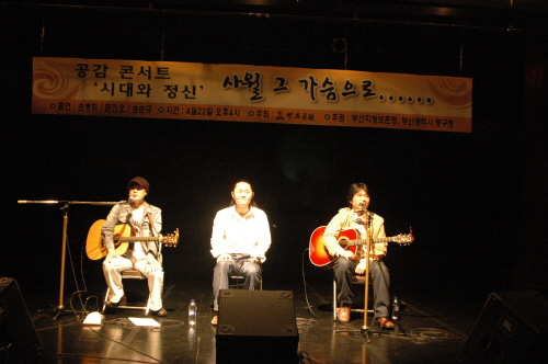 촛불의 가수 손병휘, 노래를 찾는 사람들의 보컬 출신 문진오, 뮤지컬 '수천'의 장하독 역으로 열연한 송순규, 그들이 들려주는 삶이 묻어나는 진솔한 이야기와 민중음악 반세기를 되짚어 보는 4.19 기념 문화콘서트