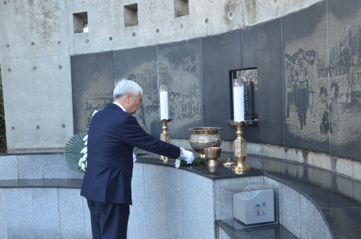 참배 후 최종열 조국혁신당 부산시당위원장은 "조국 민주화를 위해 희생하신 민주열사님들의 뜻을 받들어 정치선진국을 이루고,