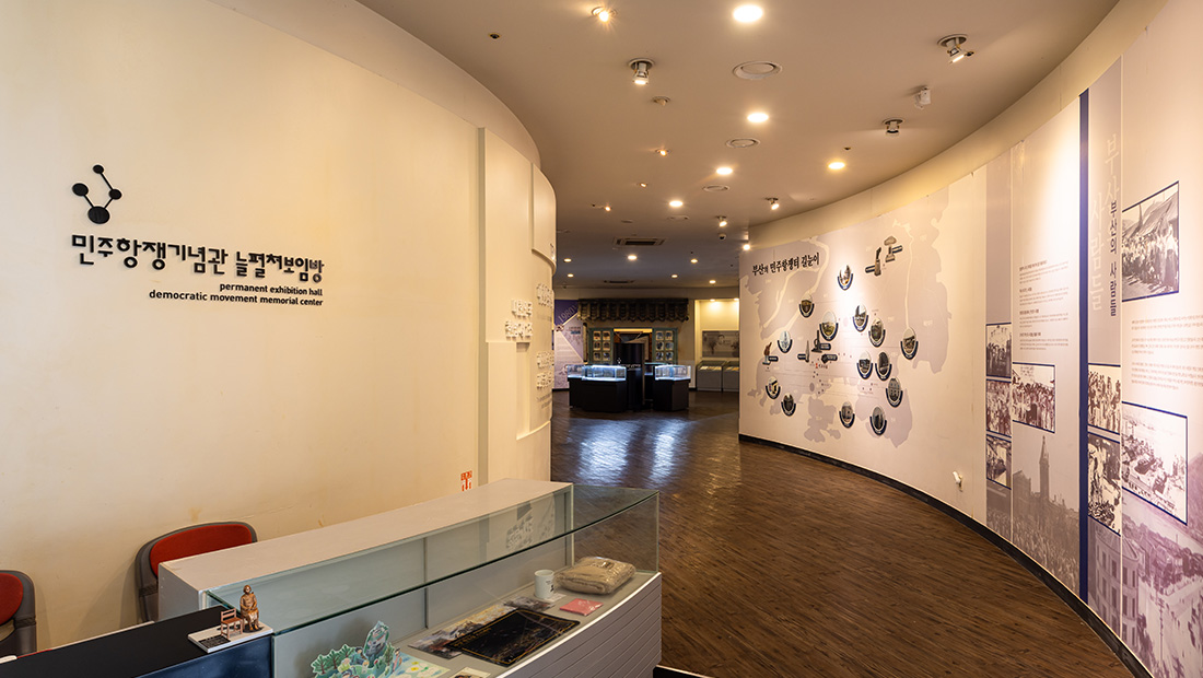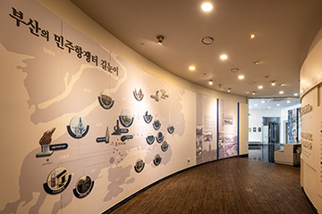 민주항쟁기념관 늘펼쳐보임방은 부산 시민들의 자랑스러운 민주항쟁의 발자취를 돌아보고 그 계승과 발전을 통해 부산의 희망찬 미래와 소중한 포부를 전망하고자 꾸며진 상설전시 공간입니다.